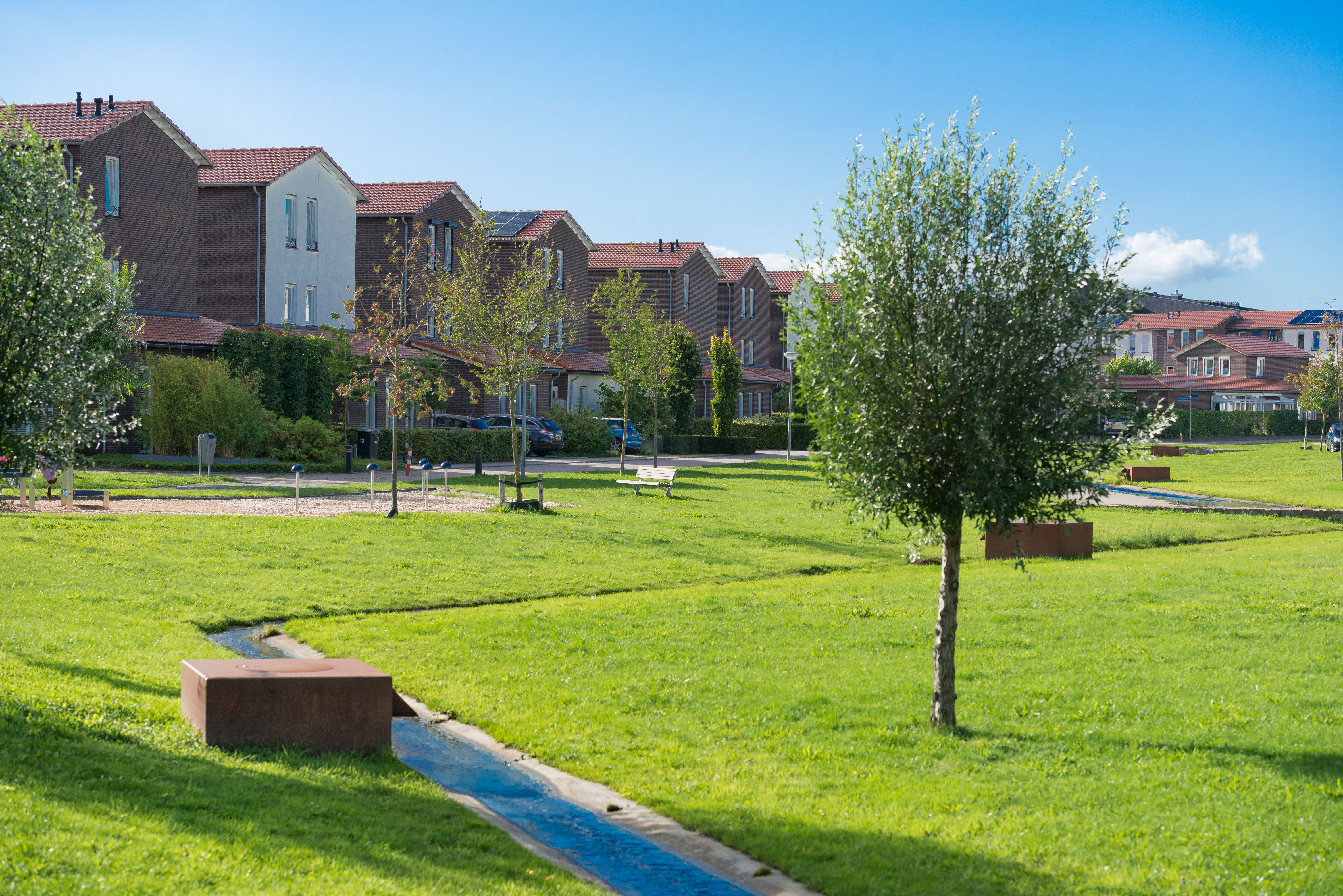 Deze buurt is een stukje stad in de natuur. De watermachine neemt een prominente plek in het rivierlandschap in. Dit innovatieve systeem zorgt voor het opbergen van regenwater. Het regenwater gaat door verschillende beken en een zuiveringsmoeras. Doordat het in beweging is en langs waterzuiverende planten komt, ontstaat een ecologisch evenwicht en een goede waterkwaliteit.